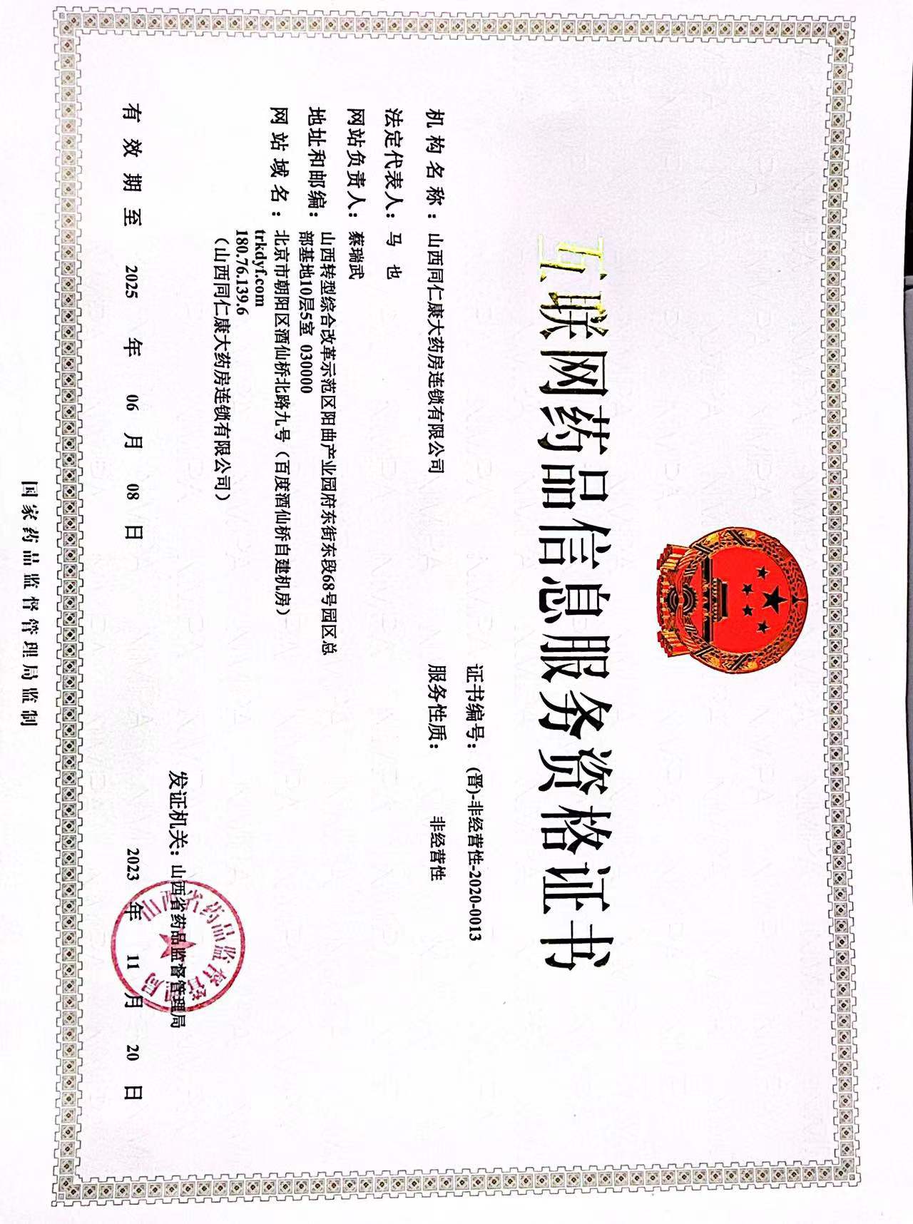 互聯(lián)網(wǎng)藥品信息服務資格證書編號:(晉)-非經(jīng)營性-2020-0013